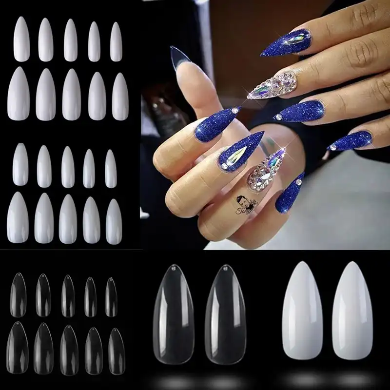 for "Stiletto Acrylics / 35 Fearless Stiletto Nail Art Designs 2017 / 100/120pc stiletto tips full cover false french nails nail fake gel art acrylic."